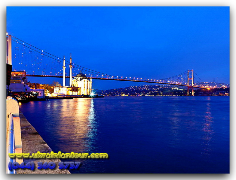 Пролив разделяет Европу и Азию. Только во время этой прогулки Вы, стоя на палубе корабля, плывущего по самому красивому проливу Евразии, увидите дома миллионеров и дома-острова, дворцы и замки султанов. Во второй половине выезд из Стамбула, ночной переезд в Украину.